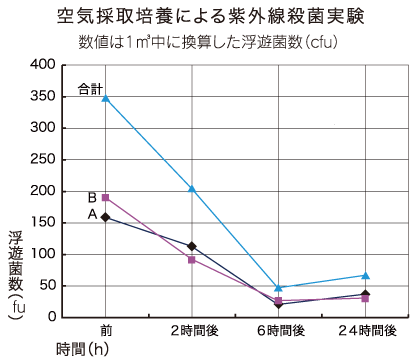 この試験は試験用ボックスではなく実際に人が生活する広さの空間て行われており、実用性も証明されています。また、医療機関をはじめ様々なお客様の施設においても実証試験を行い、高い効果を確認しております。